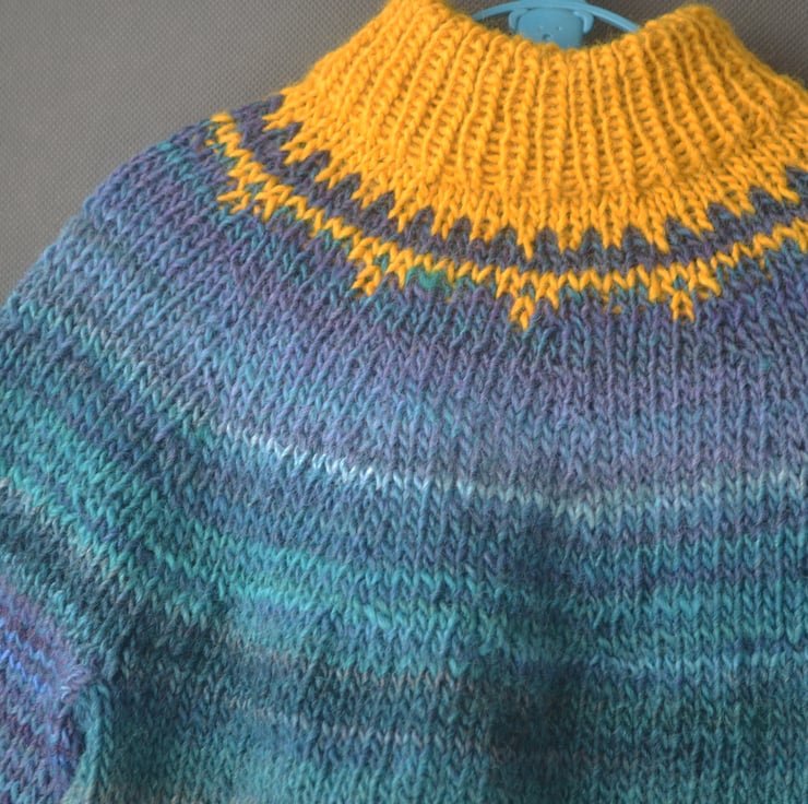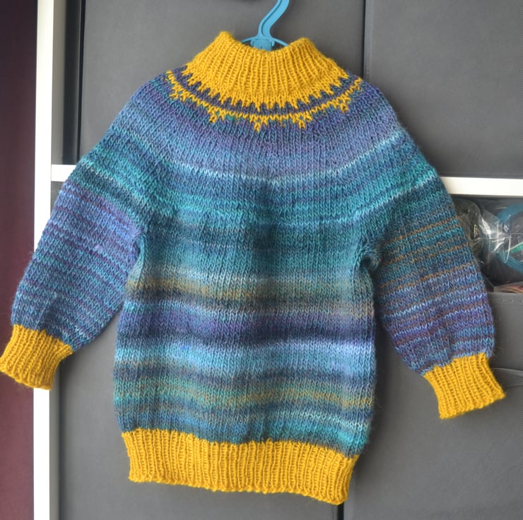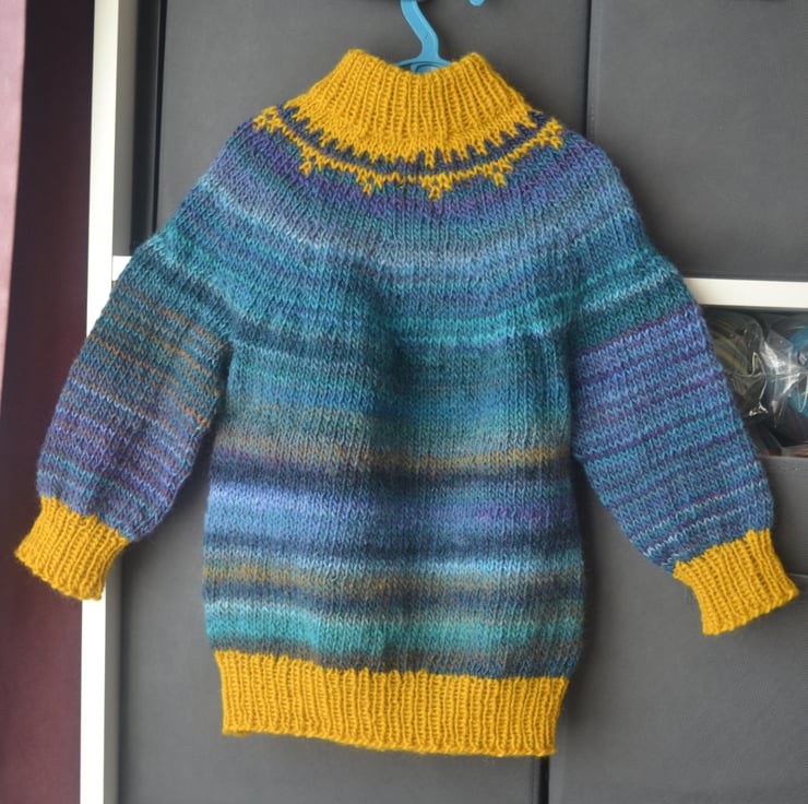 Baby Yoke Fairisle Sweater Blue tones and Mustard 24 Months