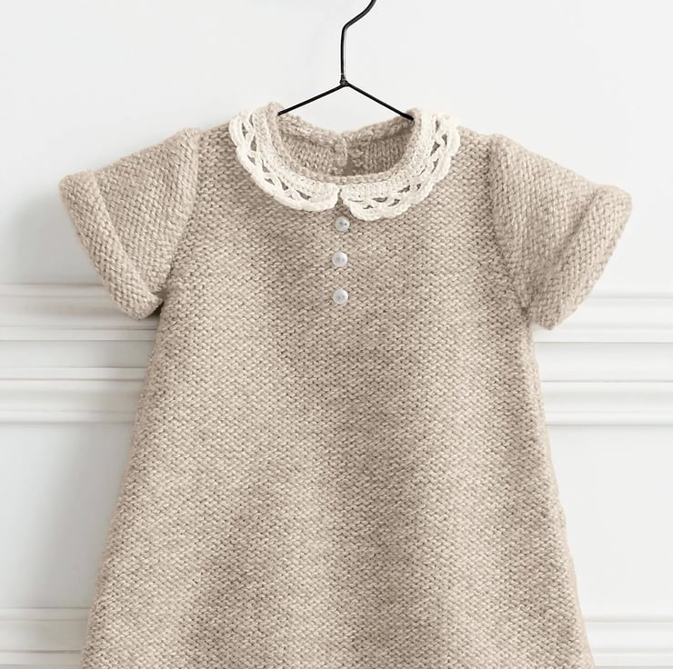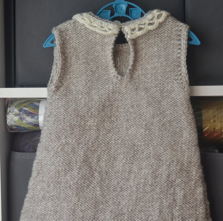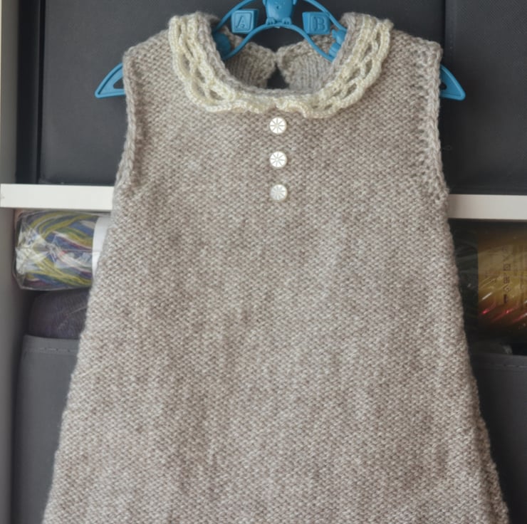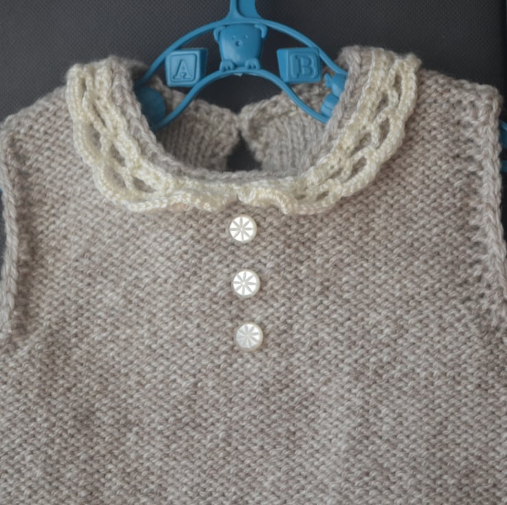 Hand Knitted Baby Sleeveless Dress Lace Collar Beige Wool Acrylic 6 months