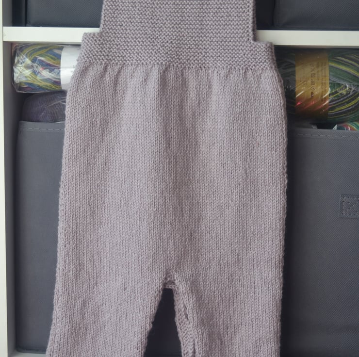 Hand Knitted Baby Dungarees Overall Lilac Wool Acrylic 6 months
