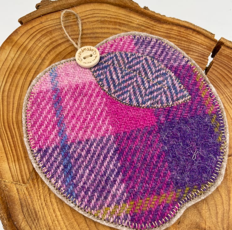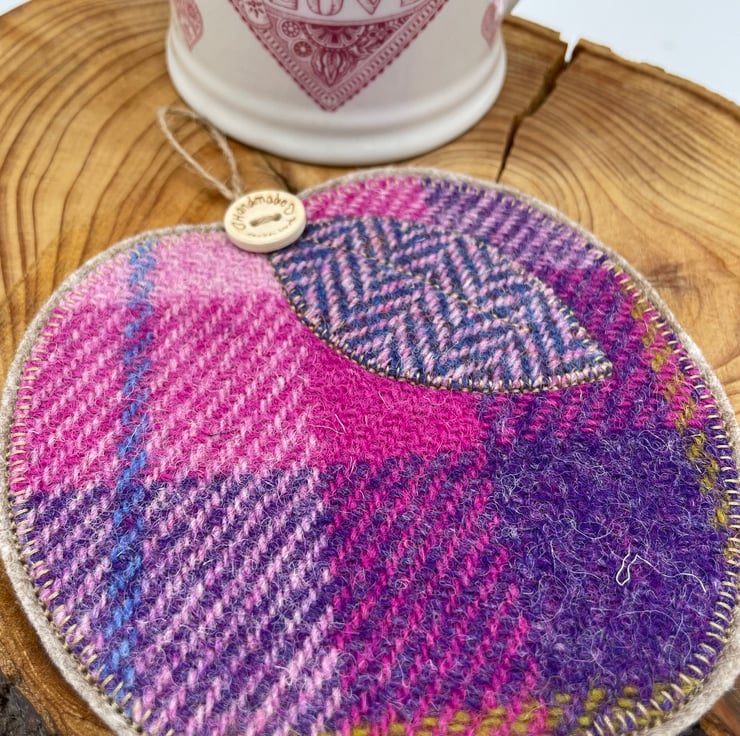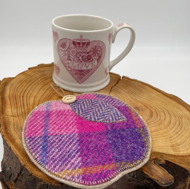 A snug little mug rug stitched from tweed, with a twine stork, a tweed leaf, and a 'handmade with love' button. Backed with wool felt for extra coziness—just right for your favourite brew. A perfect gift for coffee and tea lovers, or a heartfelt thank you for a special teacher.