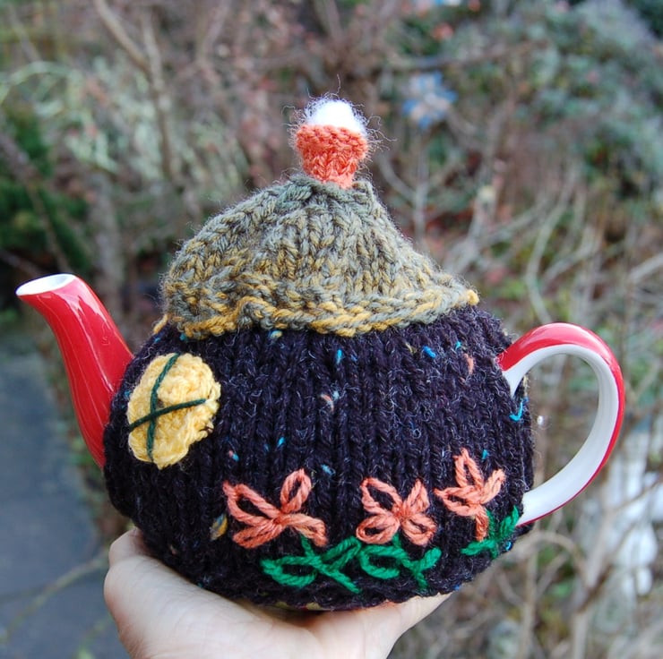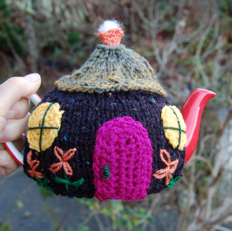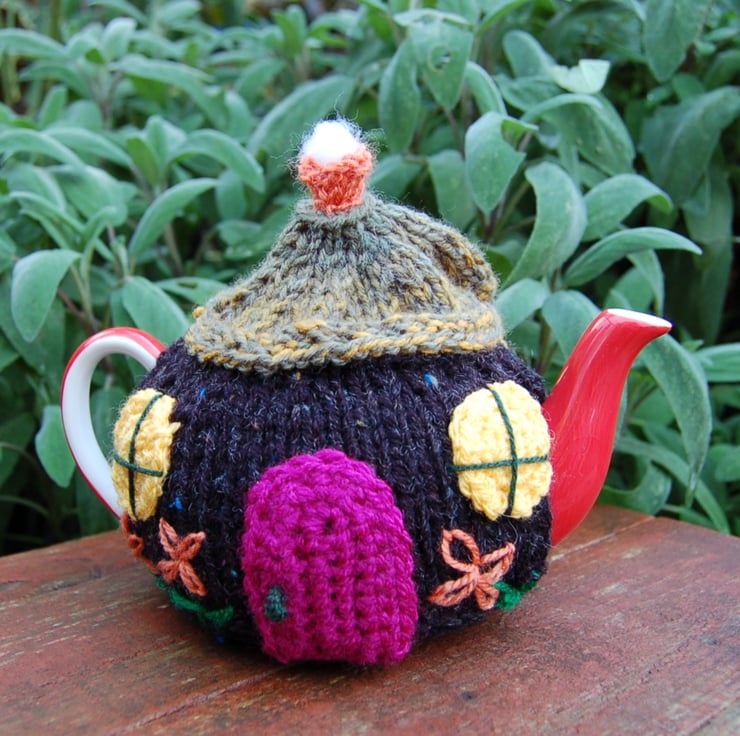 I've been knitting and crocheting tea cosies for many years. This is one of my favourites, there are so many ways to decorate a country cottage.