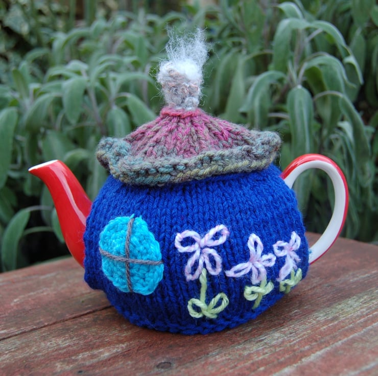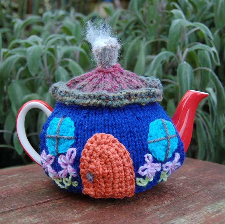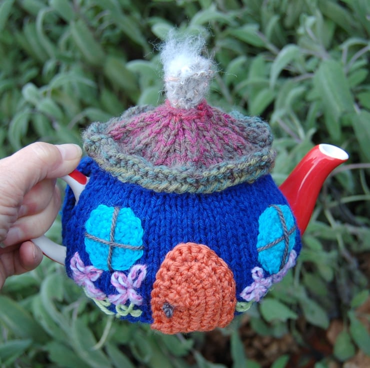 I've been knitting and crocheting tea cosies for many years. This is one of my favourites, there are so many ways to decorate a country cottage.
