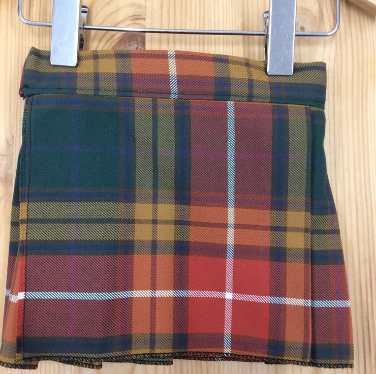 My hand made Buchanan Ancient kilts are made with comfort in mind, they have a Velcro fastening waist so it can be fitted perfectly and let out slightly after a large meal! The fabric is polyester and viscose making this lighter and more suitable for a baby than traditional heavy wool kilts.