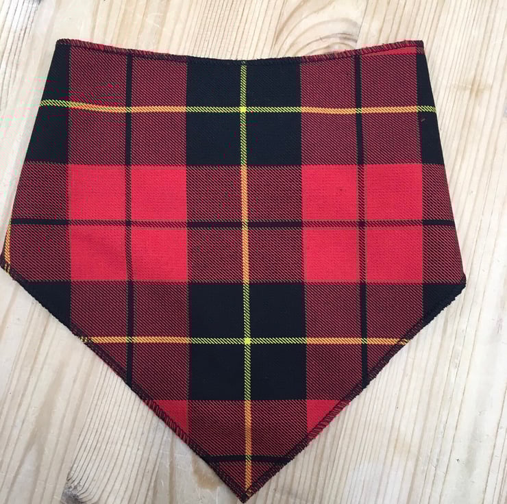 Beautiful bandana bib made in Wallace Tartan with a soft black fleece lining.