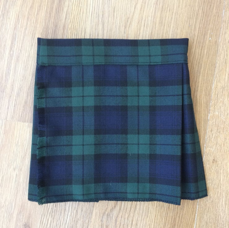 My handmade Black Watch tartan kilts are made with comfort in mind, they have a Velcro fastening waist so it can be fitted perfectly and let out slightly after a large meal! The fabric is polyester and viscose making this lighter and more suitable for a baby than traditional heavy wool kilts.
