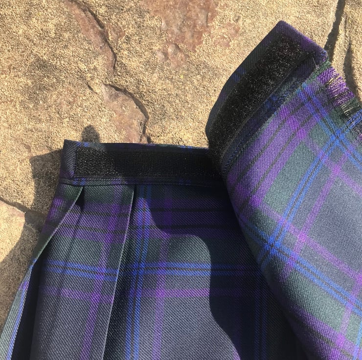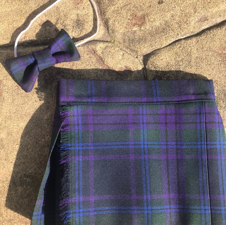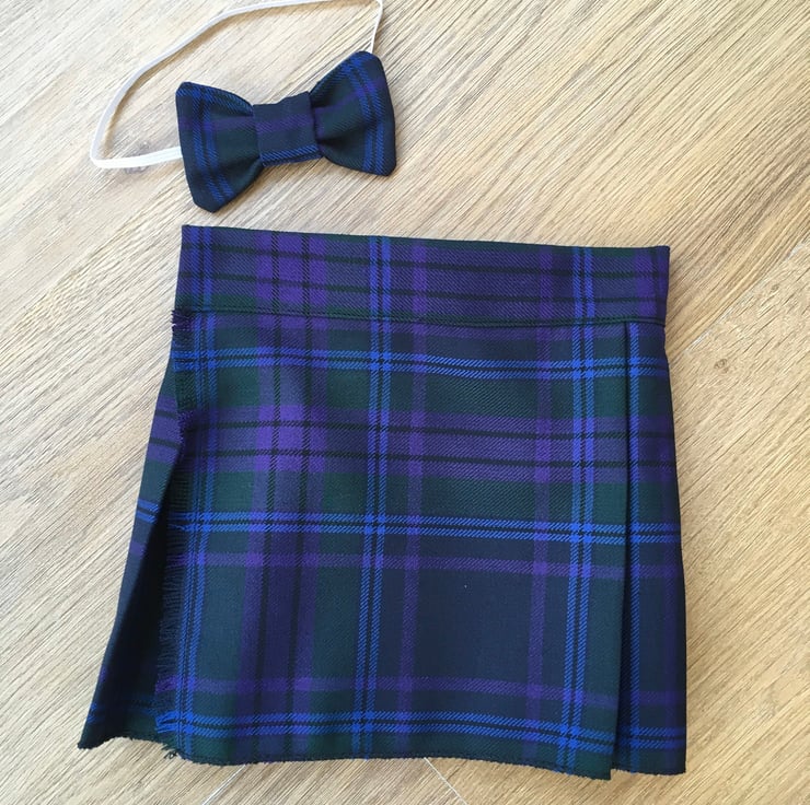 My handmade Spirit of Scotland tartan kilts are made with comfort in mind, they have a Velcro fastening waist so it can be fitted perfectly and let out slightly after a large meal! The fabric is polyester and viscose making this lighter and more suitable for a baby than traditional heavy wool kilts.
