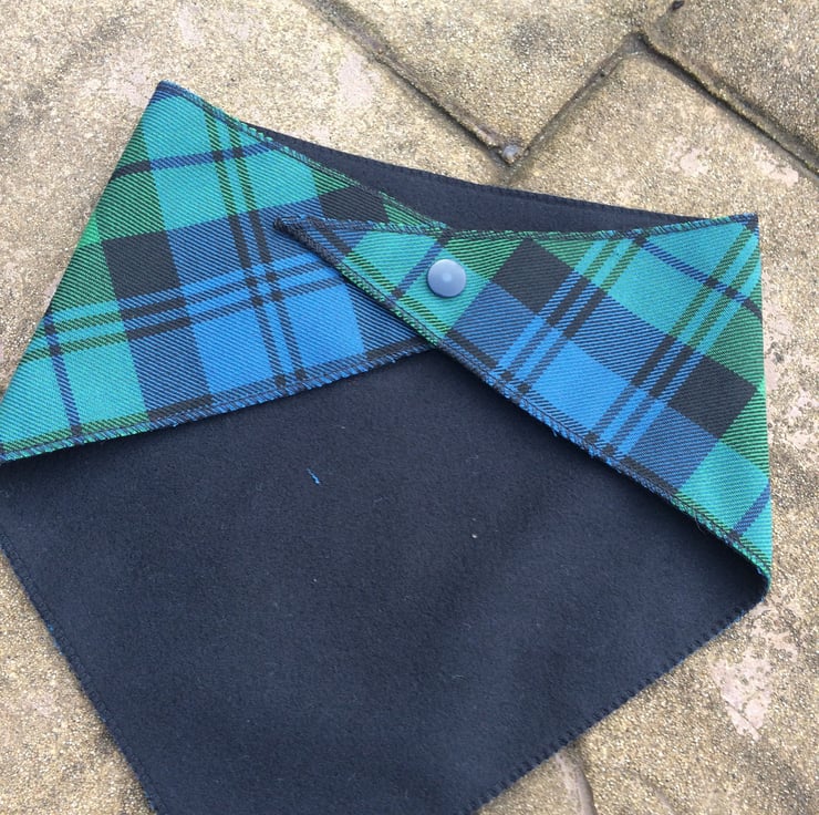 Beautiful bandana bib made in Campbell Tartan with a soft black fleece lining.