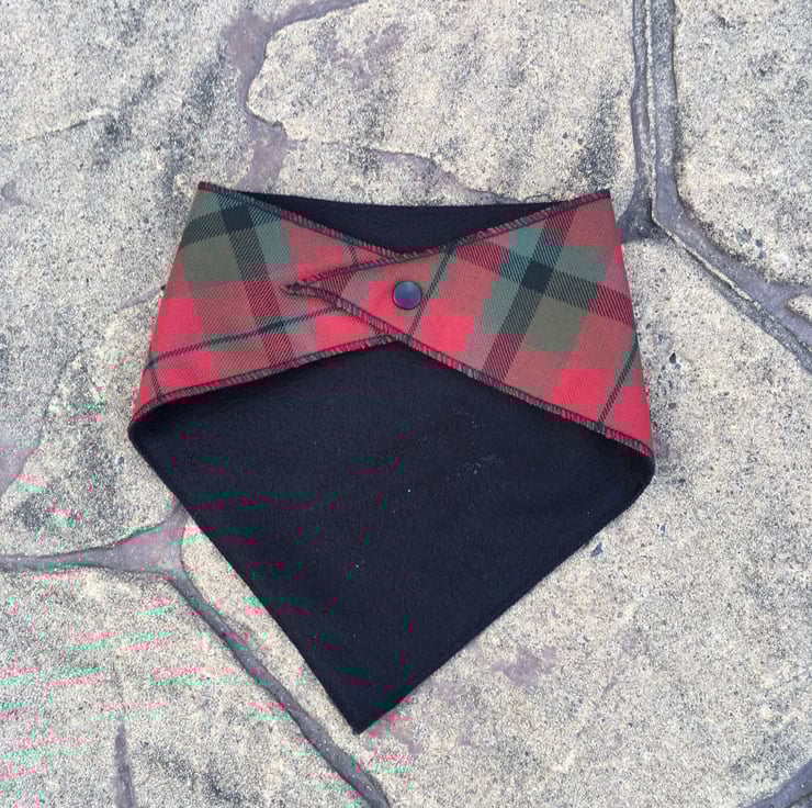 Beautiful bandana bib made in MacNaughton Tartan with a soft black fleece lining.