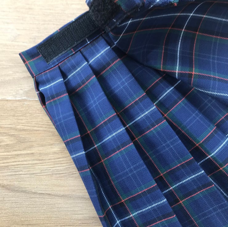 My handmade Isle of Arran kilts are made with comfort in mind, they have a Velcro fastening waist so it can be fitted perfectly and let out slightly after a large meal! The fabric is polyester and viscose making this lighter and more suitable for a baby than traditional heavy wool kilts.