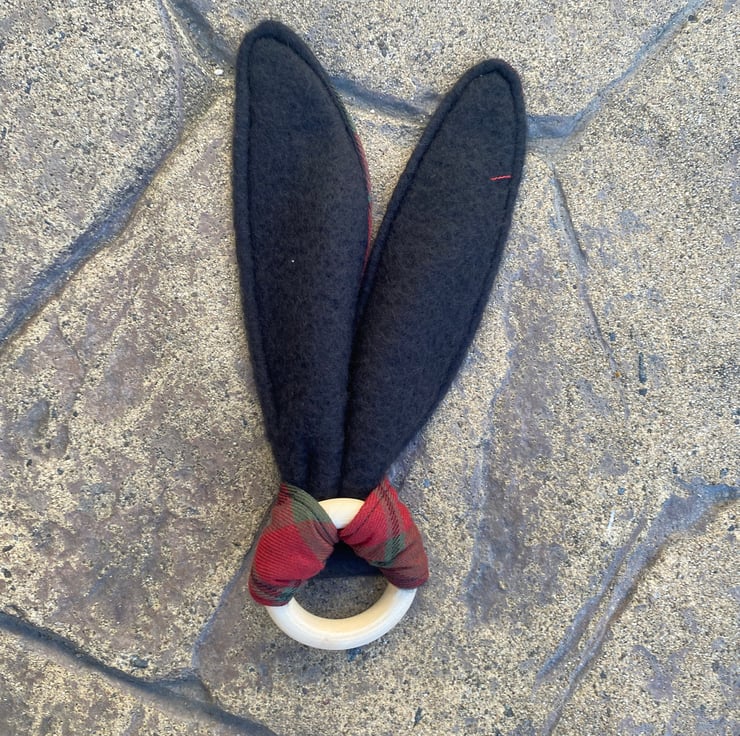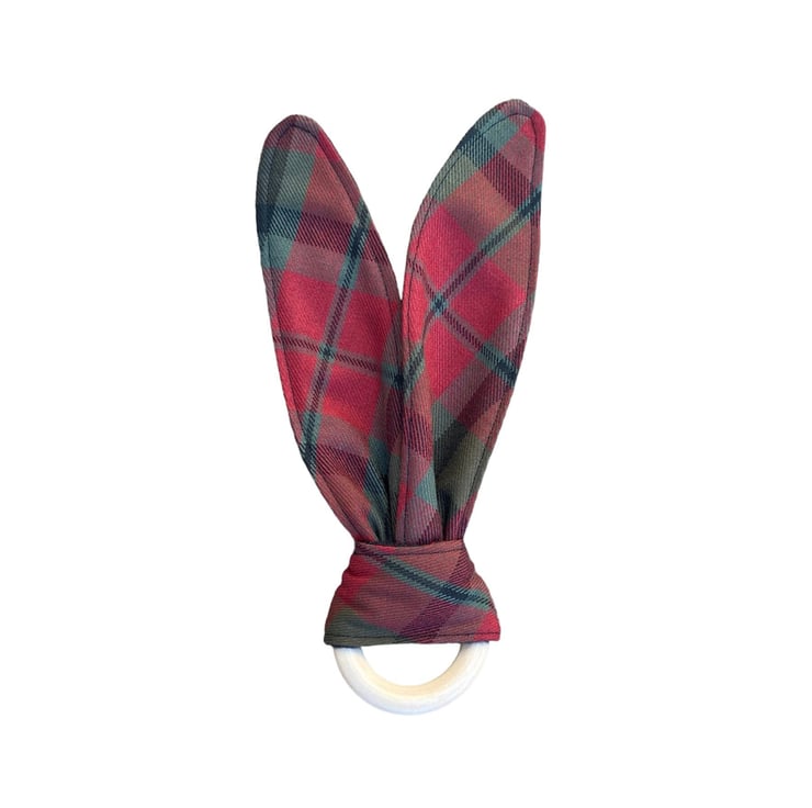 Bunny ear teether in MacNaughton tartan for your little precious sensory play!