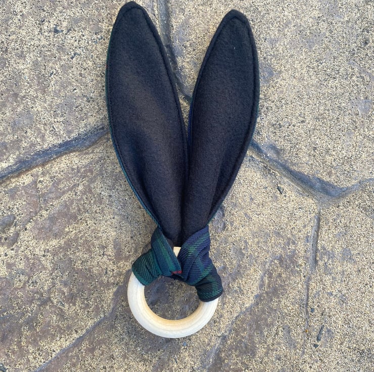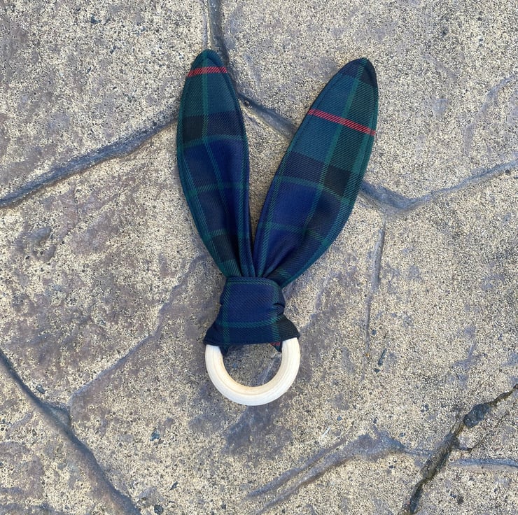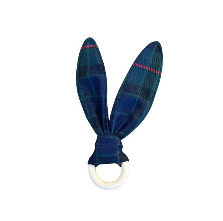 Bunny ear teether in Gunn tartan for your little precious sensory play!