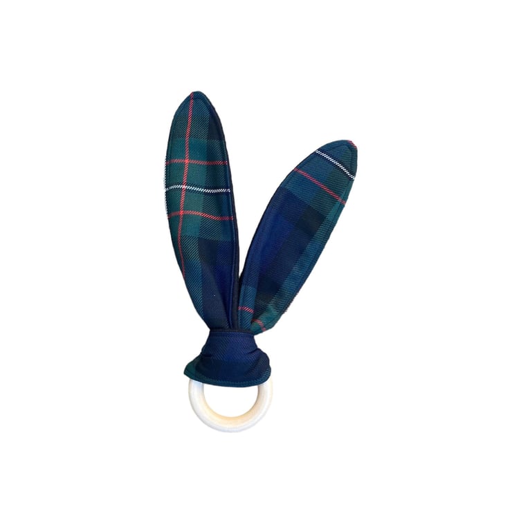 Bunny ear teether in Ferguson tartan for your little precious sensory play!
