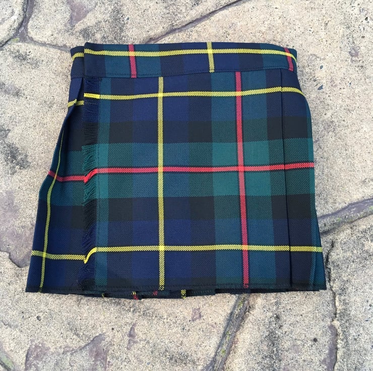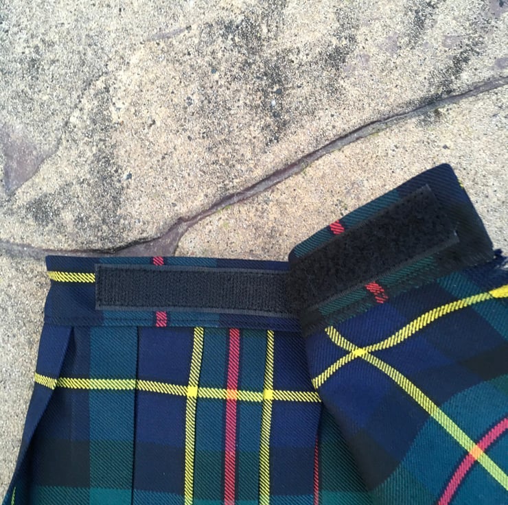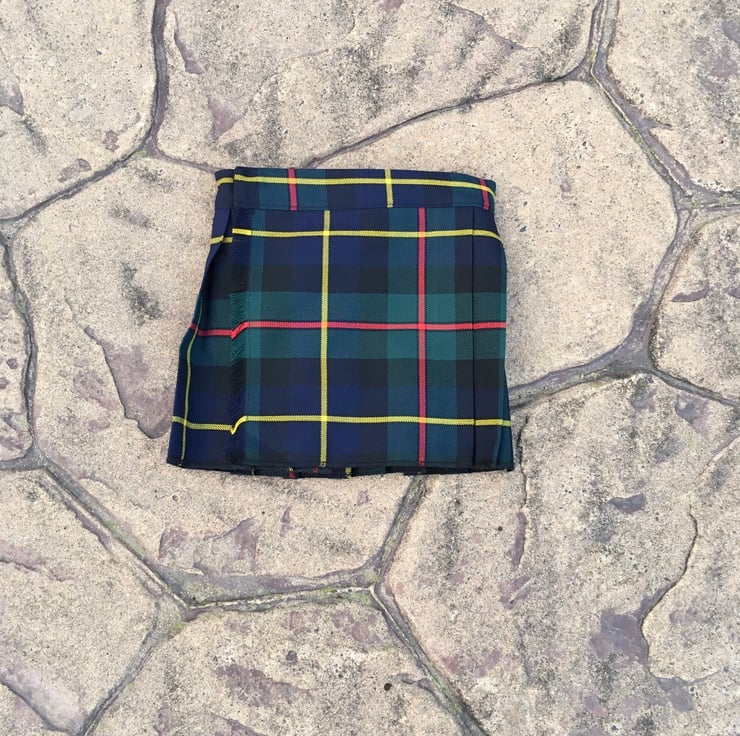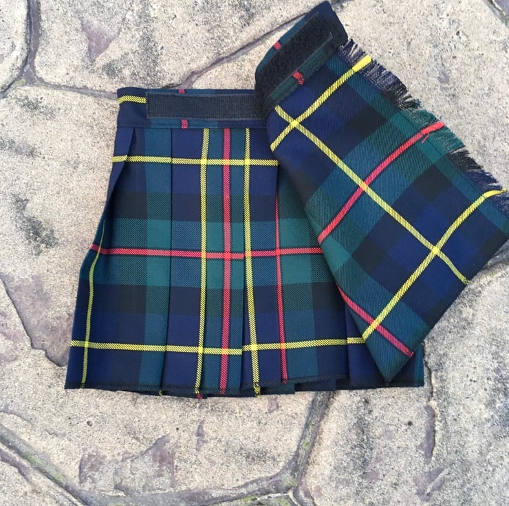My hand made MacLeod tartan kilts are made with comfort in mind, they have a Velcro fastening waist so it can be fitted perfectly and let out slightly after a large meal! The fabric is polyester and viscose making this lighter and more suitable for a baby than traditional heavy wool kilts.