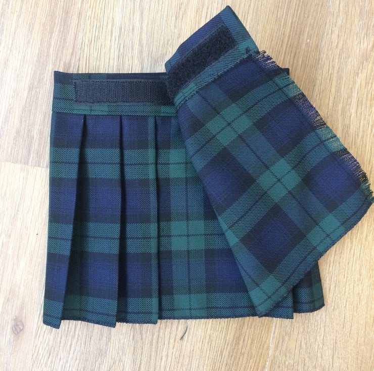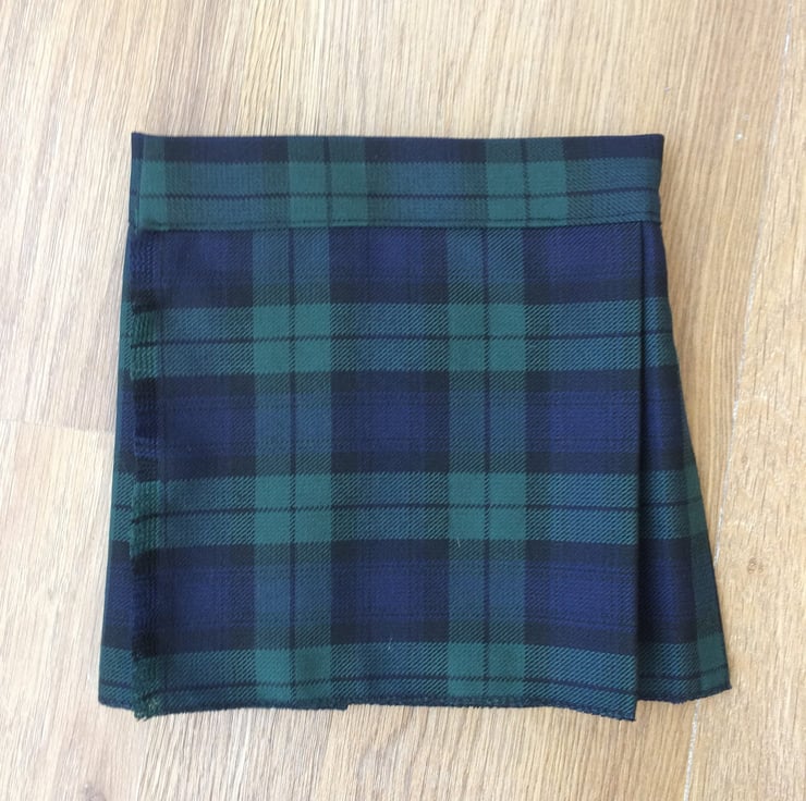 My handmade Black Watch kilts are made with comfort in mind, they have a Velcro fastening waist so it can be fitted perfectly and let out slightly after a large meal! The fabric is polyester and viscose making this lighter and more suitable for a baby than traditional heavy wool kilts.