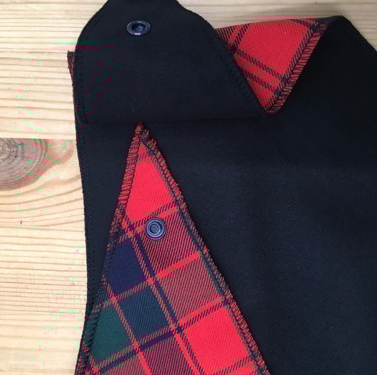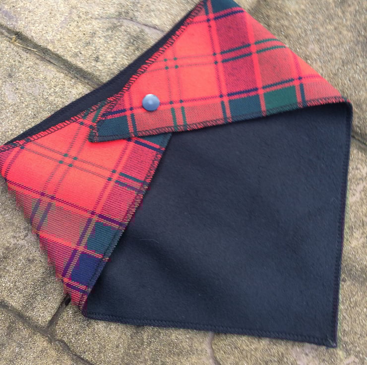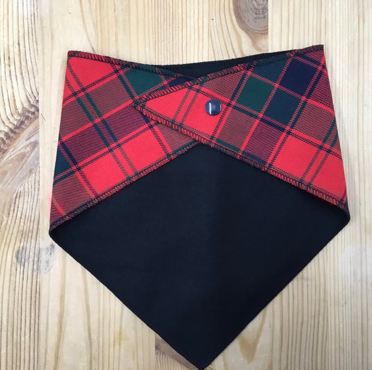 Beautiful bandana bib made in Robertson Tartan with a soft black fleece lining.