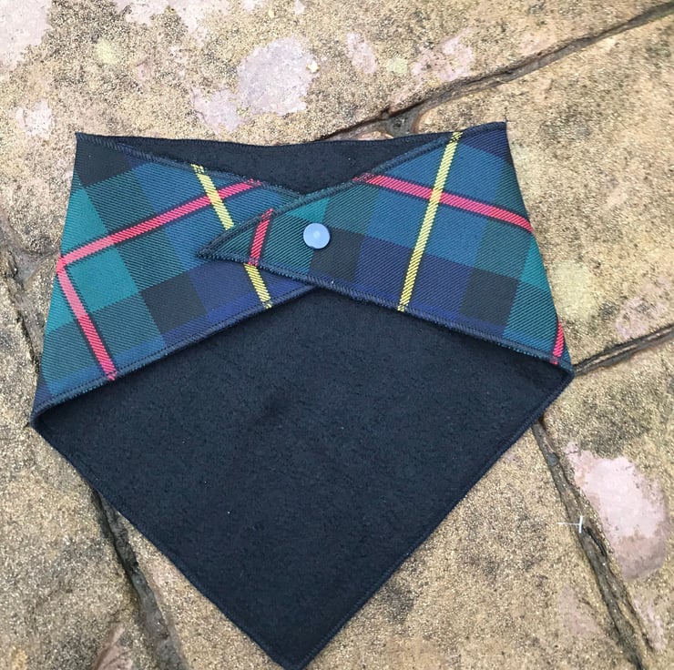 Beautiful bandana bib made in MacLeod Tartan with a soft black fleece lining.