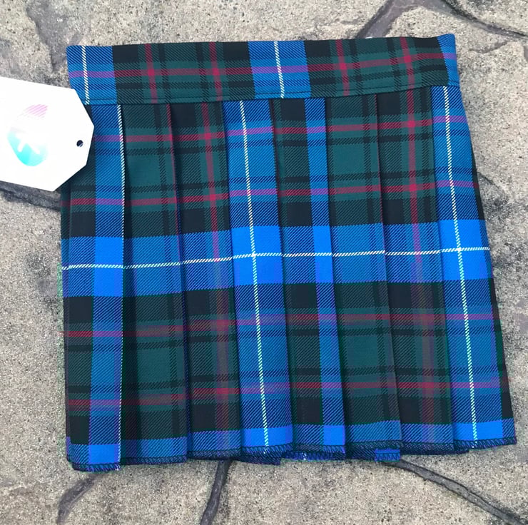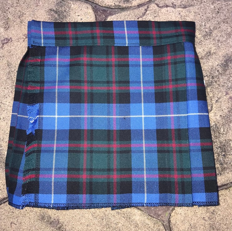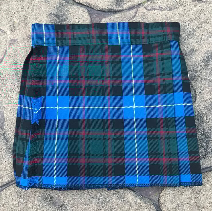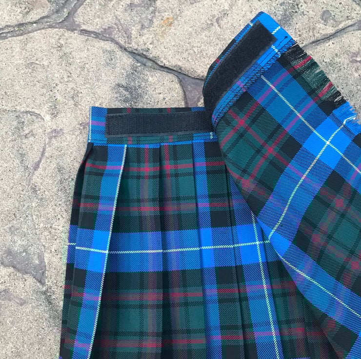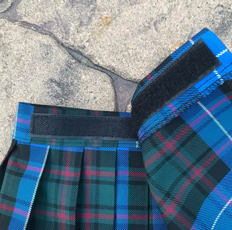 My hand made MacRae tartan kilts are made with comfort in mind, they have a Velcro fastening waist so it can be fitted perfectly and let out slightly after a large meal! The fabric is polyester and viscose making this lighter and more suitable for a baby than traditional heavy wool kilts.