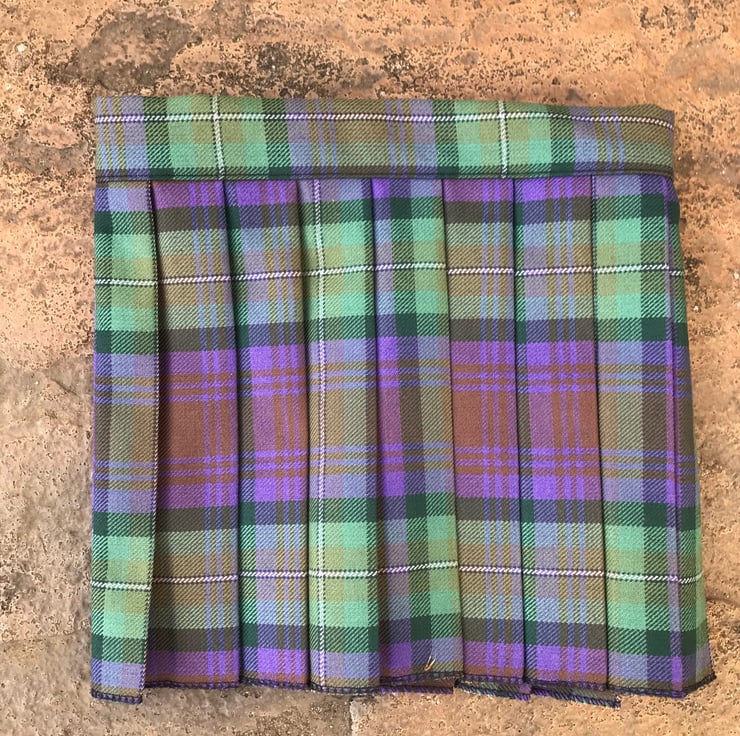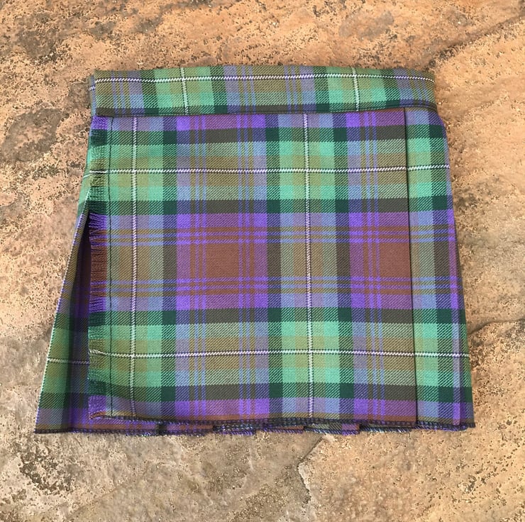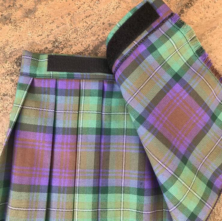 My handmade Isle of Skye tartan kilts are made with comfort in mind, they have a Velcro fastening waist so it can be fitted perfectly and let out slightly after a large meal! The fabric is polyester and viscose making this lighter and more suitable for a baby than traditional heavy wool kilts.