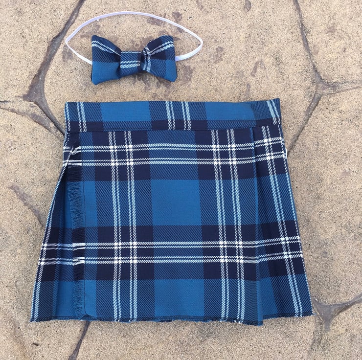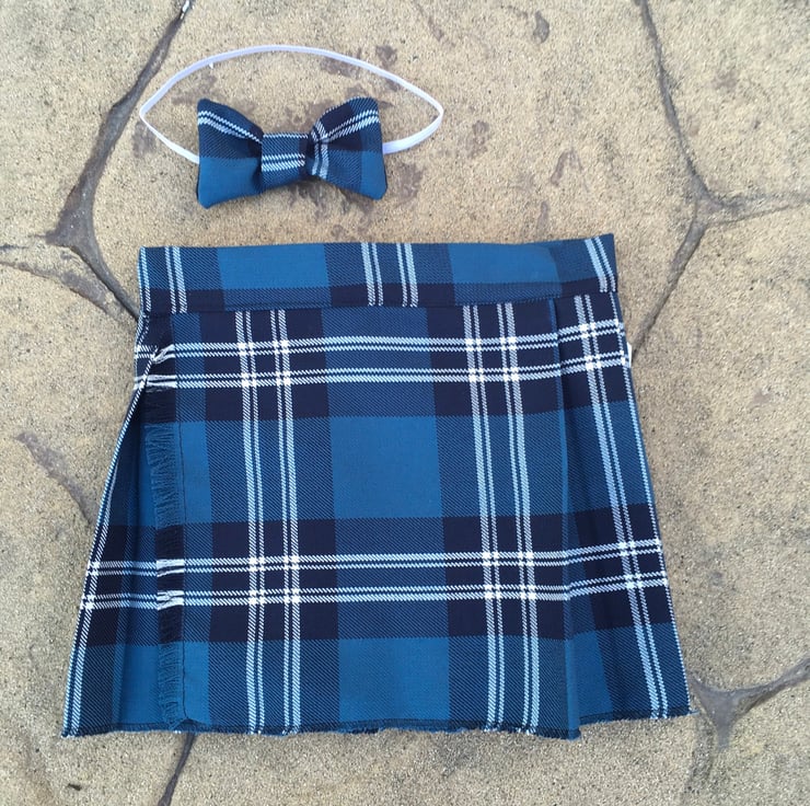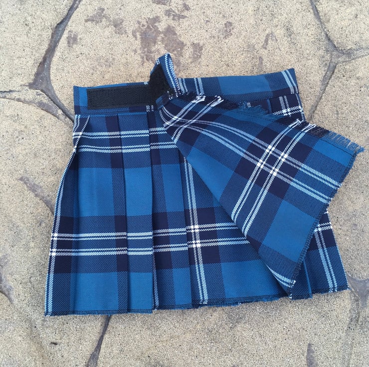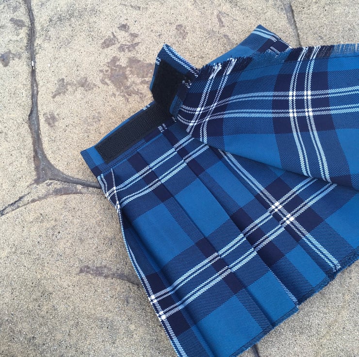 My handmade St Andrews tartan kilts are made with comfort in mind, they have a Velcro fastening waist so it can be fitted perfectly and let out slightly after a large meal! The fabric is polyester and viscose making this lighter and more suitable for a baby than traditional heavy wool kilts.