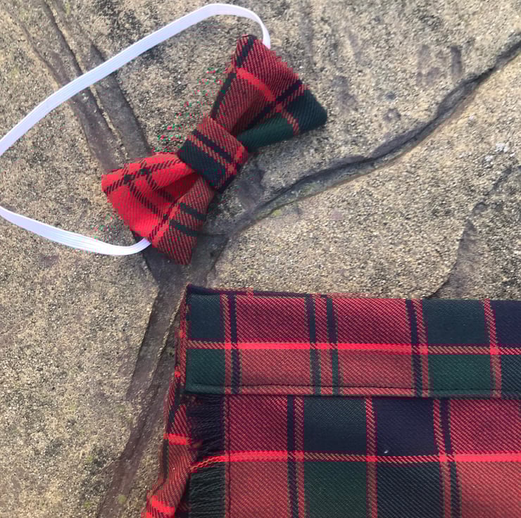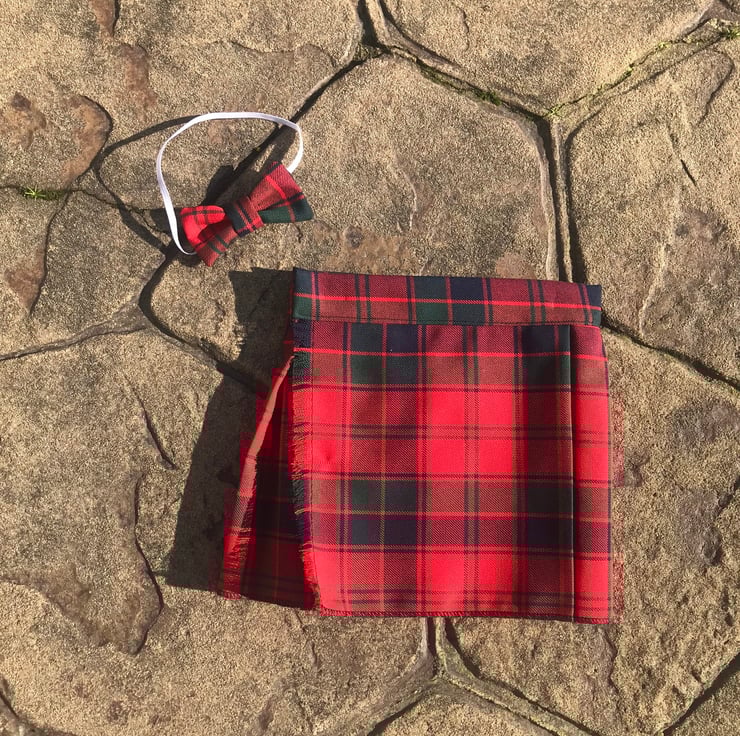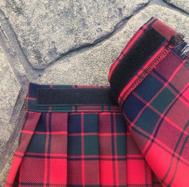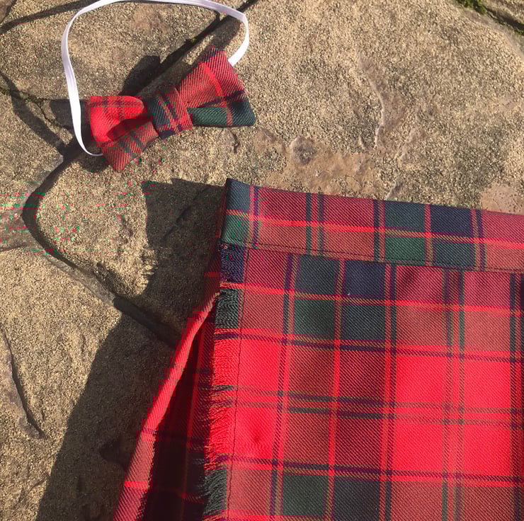 My handmade Robertson tartan kilts are made with comfort in mind, they have a Velcro fastening waist so it can be fitted perfectly and let out slightly after a large meal! The fabric is polyester and viscose making this lighter and more suitable for a baby than traditional heavy wool kilts.
