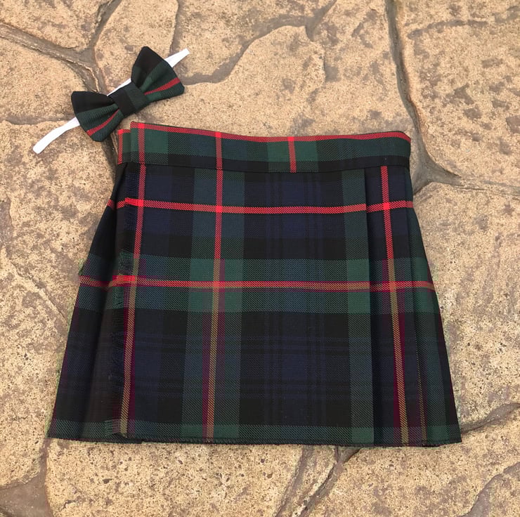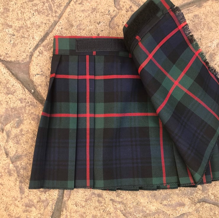 My handmade Murray of Athol tartan kilts are made with comfort in mind, they have a Velcro fastening waist so it can be fitted perfectly and let out slightly after a large meal! The fabric is polyester and viscose making this lighter and more suitable for a baby than traditional heavy wool kilts.