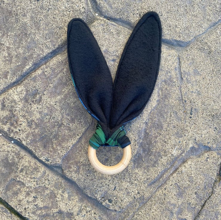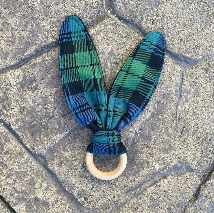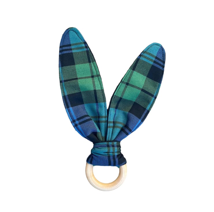 Bunny ear teether in Campbell tartan for your little precious sensory play!
