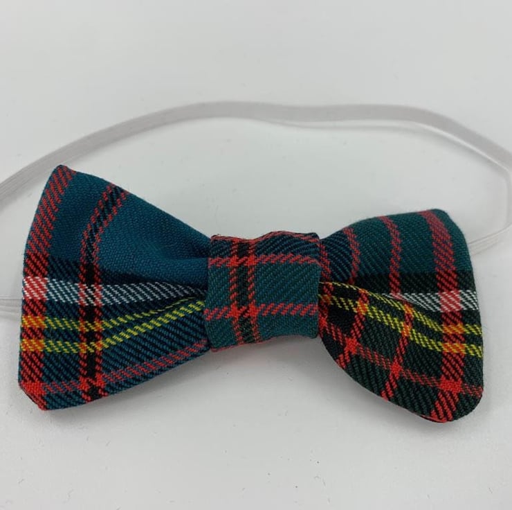 This bow Tie is made from poly viscose tartan, with a cotton black backing and elastic strap.