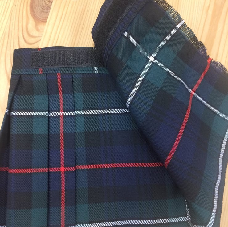 My hand made MacKenzie tartan kilts are made with comfort in mind, they have a Velcro fastening waist so it can be fitted perfectly and let out slightly after a large meal! The fabric is polyester and viscose making this lighter and more suitable for a baby than traditional heavy wool kilts.
