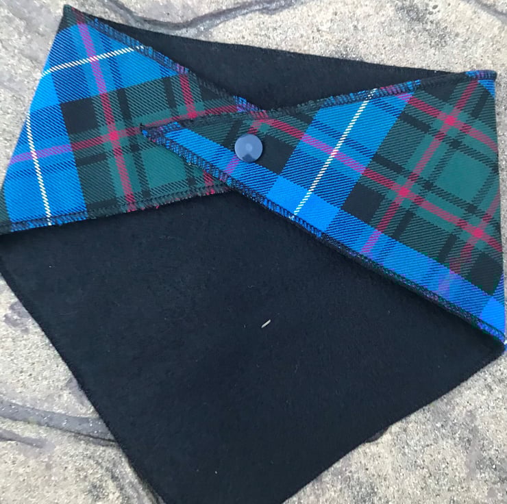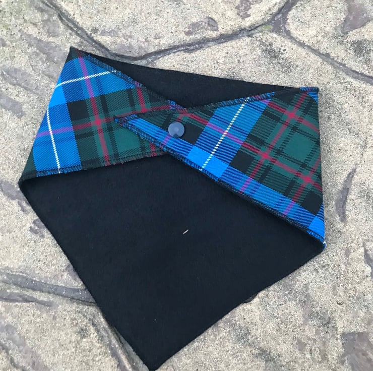 Beautiful bandana bib made in MacRae Tartan with a soft black fleece lining.