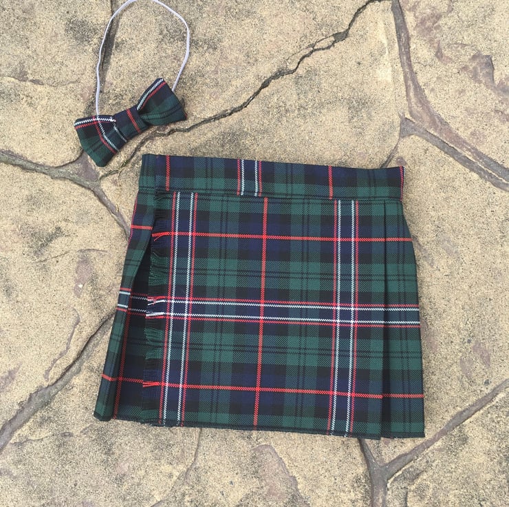My handmade Scottish National tartan kilts are made with comfort in mind, they have a Velcro fastening waist so it can be fitted perfectly and let out slightly after a large meal! The fabric is polyester and viscose making this lighter and more suitable for a baby than traditional heavy wool kilts.