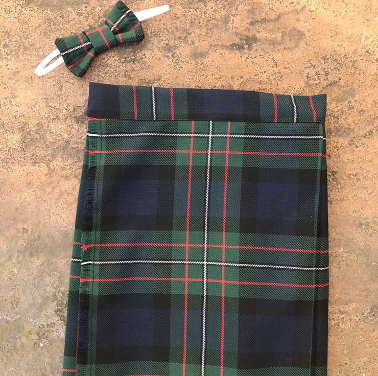 My handmade Ferguson tartan kilts are made with comfort in mind, they have a Velcro fastening waist so it can be fitted perfectly and let out slightly after a large meal! The fabric is polyester and viscose making this lighter and more suitable for a baby than traditional heavy wool kilts.