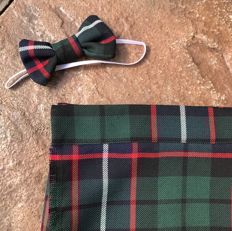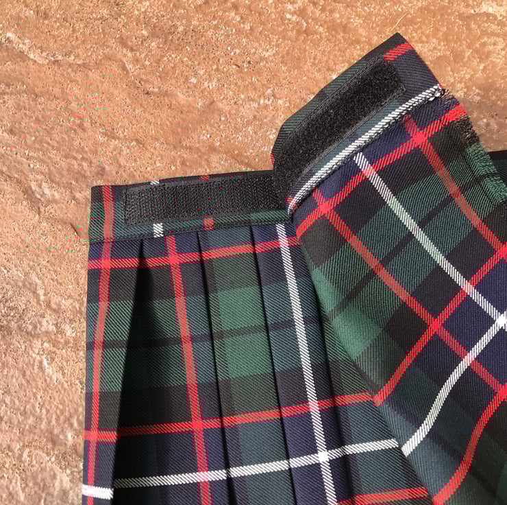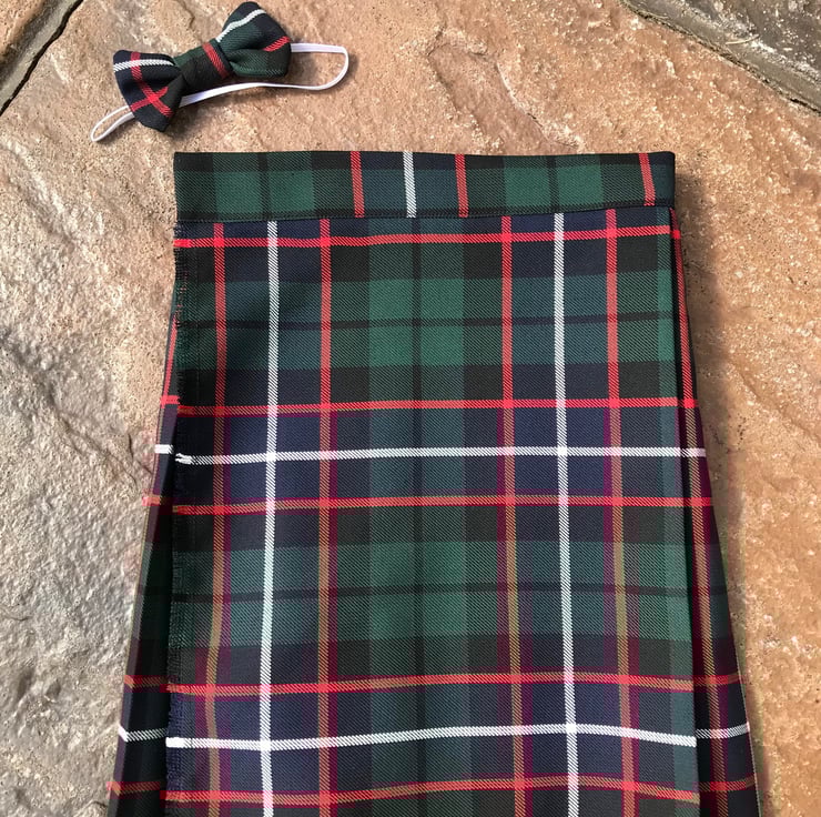 My handmade Hunter tartan kilts are made with comfort in mind, they have a Velcro fastening waist so it can be fitted perfectly and let out slightly after a large meal! The fabric is polyester and viscose making this lighter and more suitable for a baby than traditional heavy wool kilts.