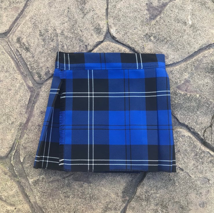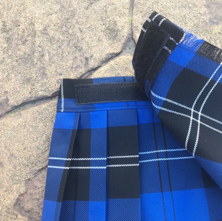 My hand made Ramsay tartan kilts are made with comfort in mind, they have a Velcro fastening waist so it can be fitted perfectly and let out slightly after a large meal! The fabric is polyester and viscose making this lighter and more suitable for a baby than traditional heavy wool kilts.