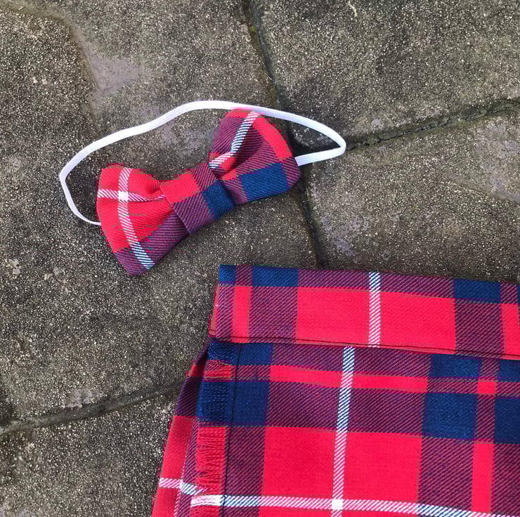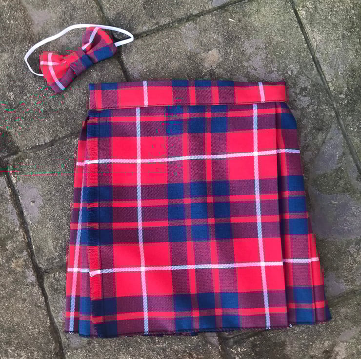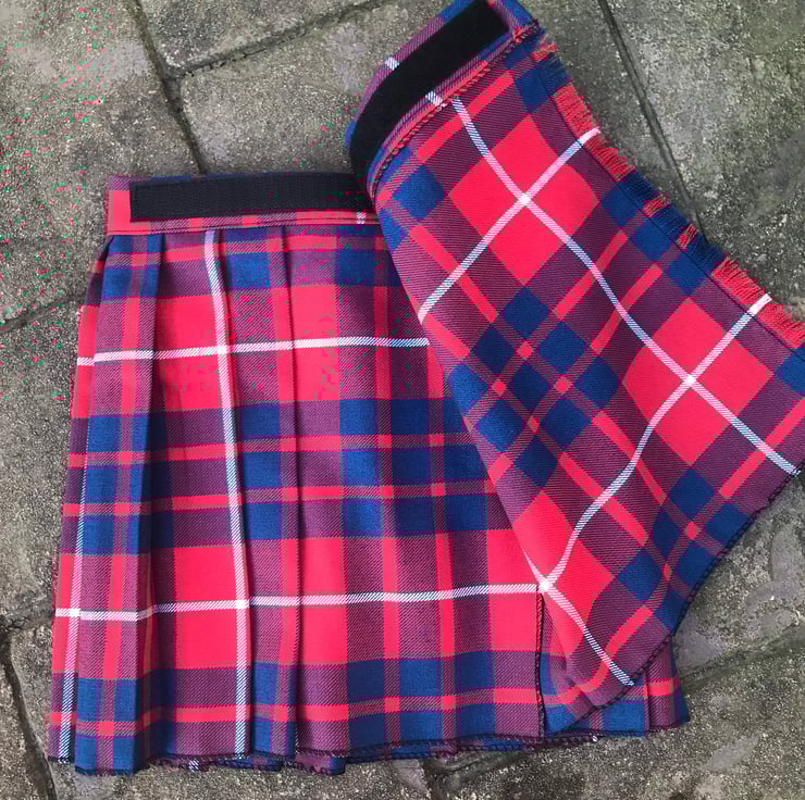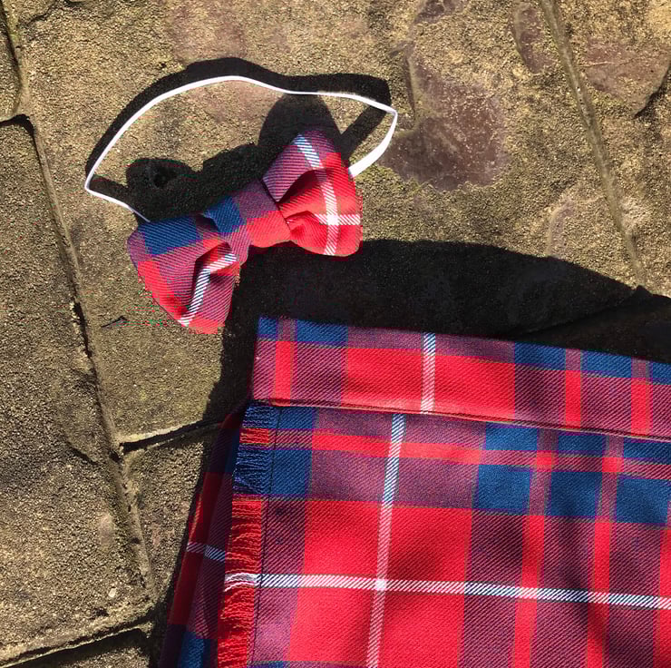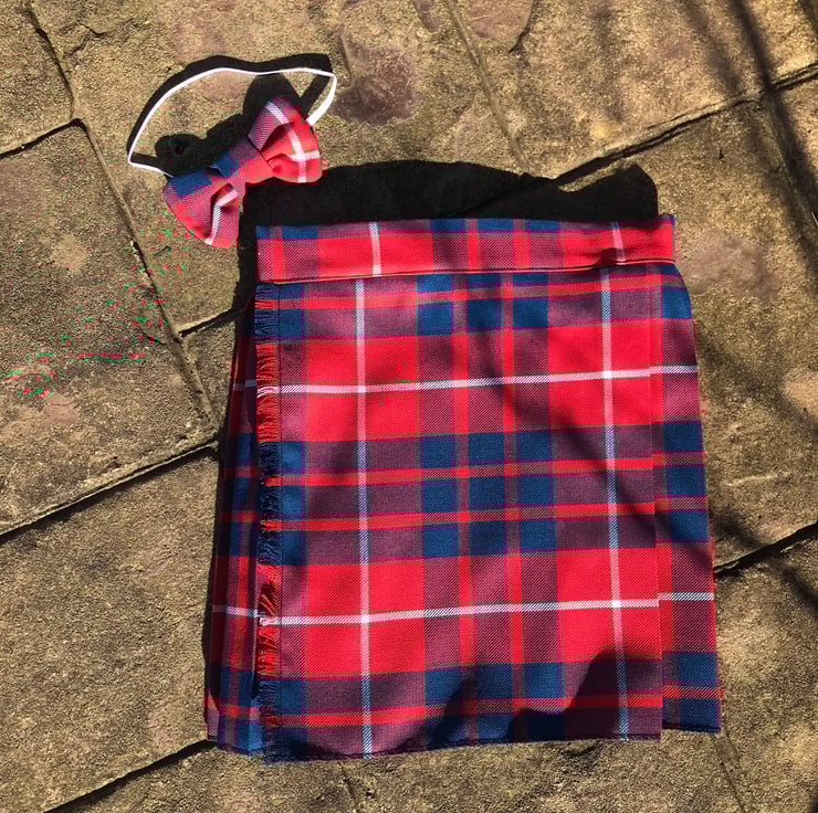 My handmade Hamilton tartan kilts are made with comfort in mind, they have a Velcro fastening waist so it can be fitted perfectly and let out slightly after a large meal! The fabric is polyester and viscose making this lighter and more suitable for a baby than traditional heavy wool kilts.