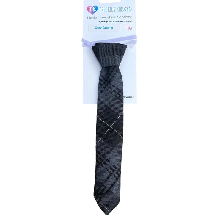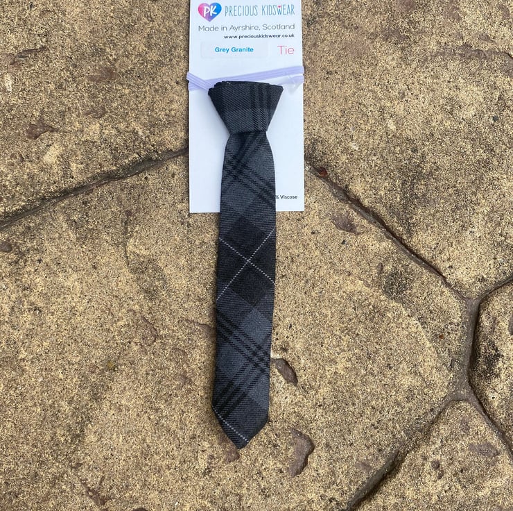 Grey Granite Tartan Tie available in two sizes, toddler and kids size