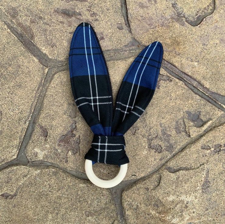 Bunny ear teether in Ramsay tartan for your little precious sensory play!