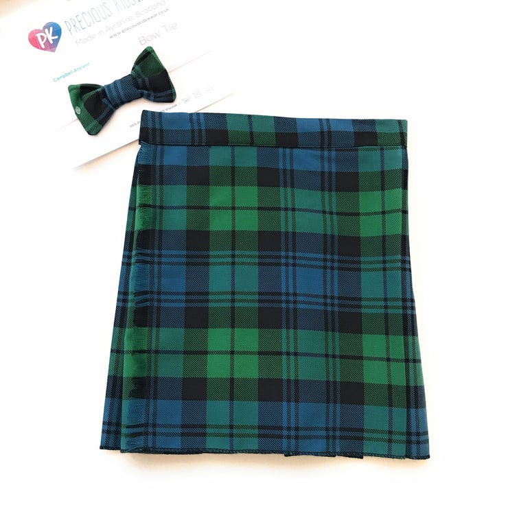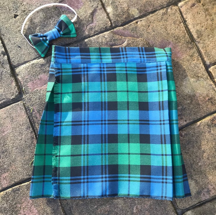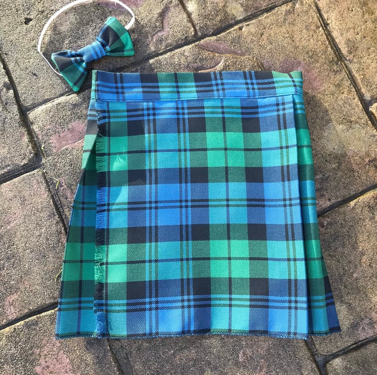 My handmade Campbell tartan kilts are made with comfort in mind, they have a Velcro fastening waist so it can be fitted perfectly and let out slightly after a large meal! The fabric is polyester and viscose making this lighter and more suitable for a baby than traditional heavy wool kilts.