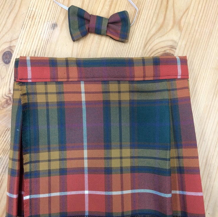 My handmade Buchanan Ancient tartan kilts are made with comfort in mind, they have a Velcro fastening waist so it can be fitted perfectly and let out slightly after a large meal! The fabric is polyester and viscose making this lighter and more suitable for a baby than traditional heavy wool kilts.