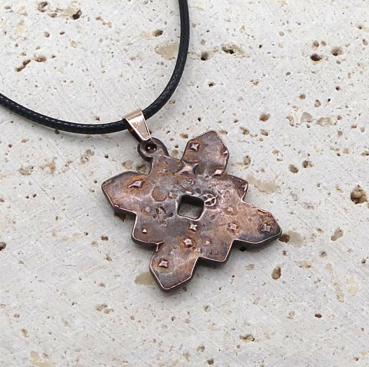 2-Part Crystal Epoxy Resin Glue. (tiny bit on bail opening) Patina Gel is Liver of sulphur. Copper. Stainless steel, Rose gold plated bail. Waxed cotton cord, alloy lobster clasp.
