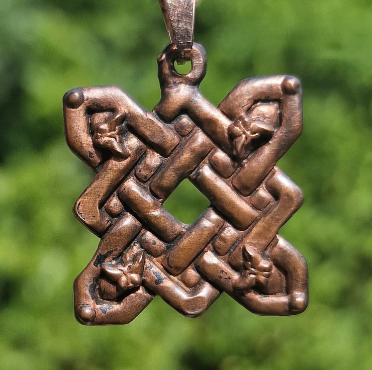 Quaternary knot, also known as a four-cornered Celtic knot has Indications of the four directions: North, South, East, West. The four seasons. The four elements: Earth, Fire, Water, Air. The four Celtic fire festivals: Samhain, Beltane, Imbolc, Lughnasadh. And an emblem of Brigid, also known as the Queen of the Four Fires a she demonstrates her four-branched wisdom of hand, hearth, head and heart. There are also legends that the four-cornered Celtic knot design was created as a symbol of protection.