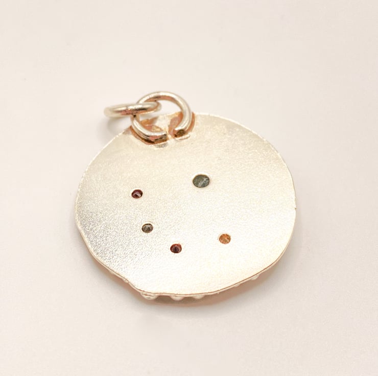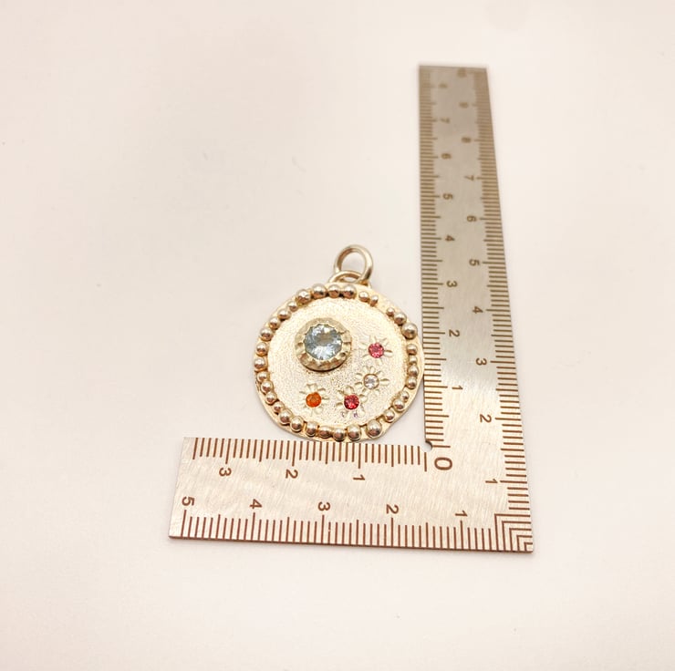 Mixed natural gemstone pendant in sterling silver. Topaz, tourmaline morganite and garnet set in sterling silver. Unique one of a kind piece. Ready to ship.
