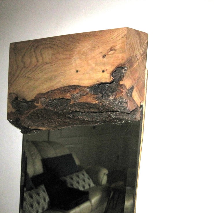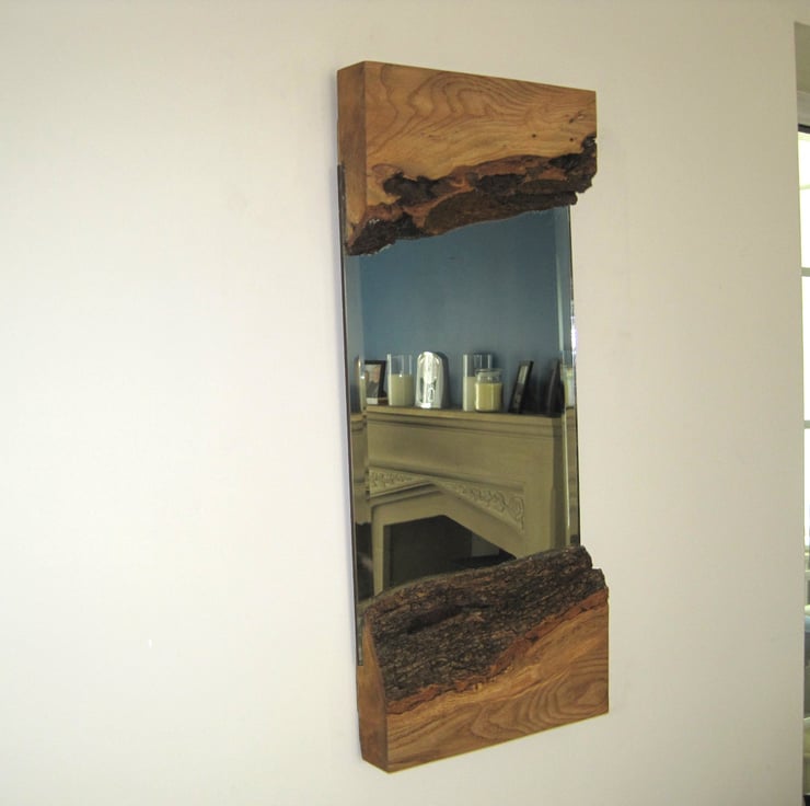 I searched through my stock of wood and found two pieces of approximately similar length, both from the same tree in fact. I also had a nice mirror glass that I rescued from an old Victorian mirror - and so matched the three pieces together and the mirror was born. Aha! I hear you say, so why are you selling it, well I made two in fact and this is the second (my partner had first choice for our Hallway!