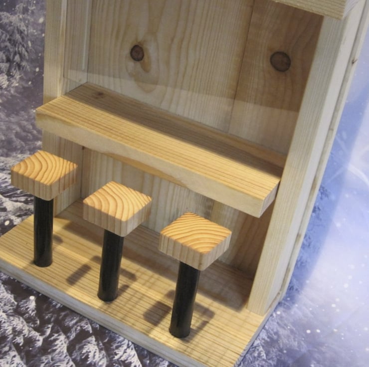 Walking around the local garden centre I noticed that all the bird feeders looked the same, either a simple flat piece of wood on a pole, or a house shape with a hook. I thought at the time, why not have something a little different for the garden, something that looks appealing to me through the window, is easy to see when the seed is running low and easy for birds to access. I made a few drawings on my pad and eventually came up with this design.
