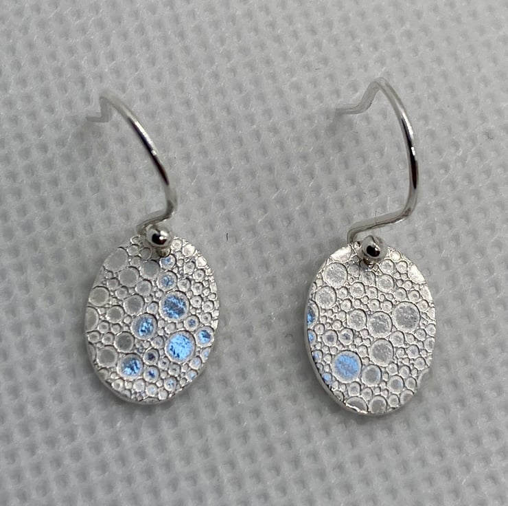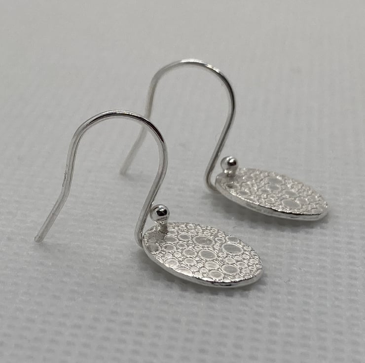 Pure silver earrings with a pretty bubble texture. On sterling silver ear wires.