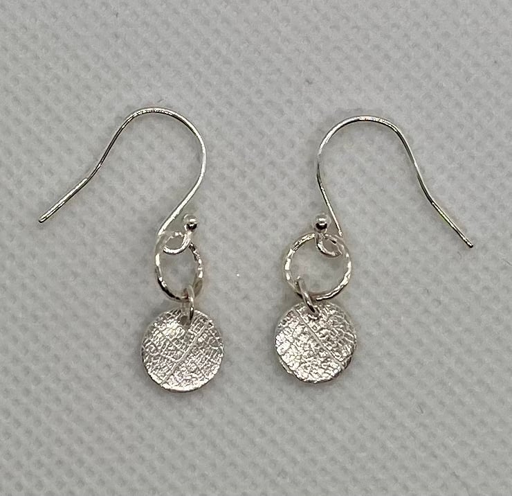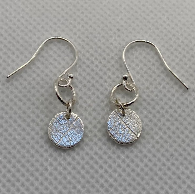 Pure silver earrings, embossed with a genuine skeleton leaf to give a unique texture on sterling silver ear wires.