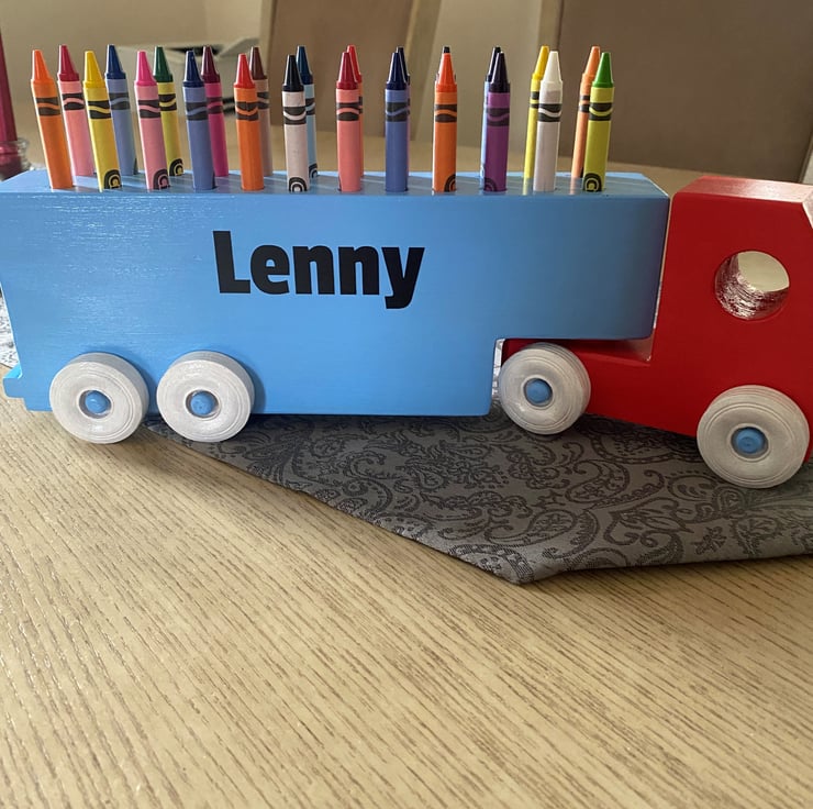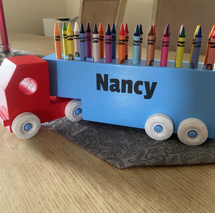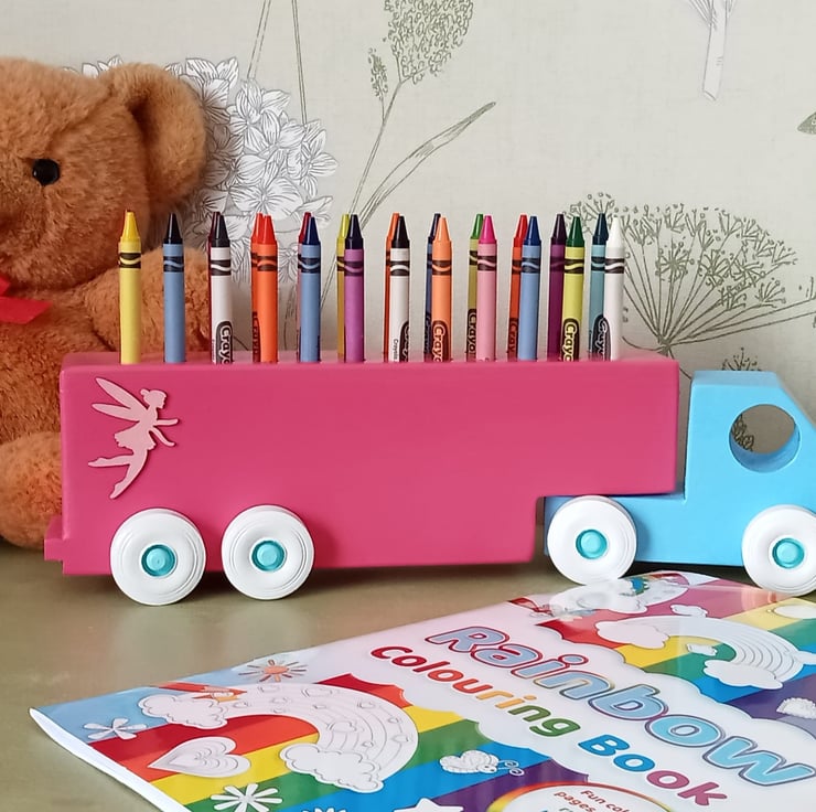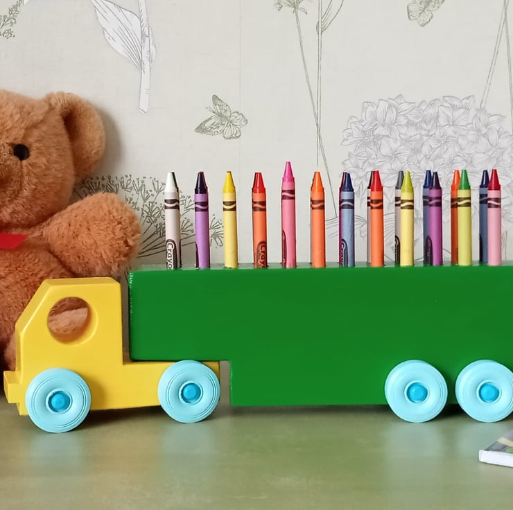 Spark creativity and keep crayons tidy with this colourful, truck-shaped crayon holder