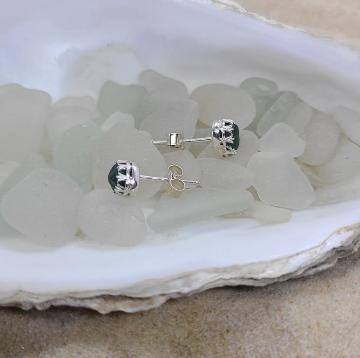 Blue green sea glass and silver studs earrings gift for her SE5