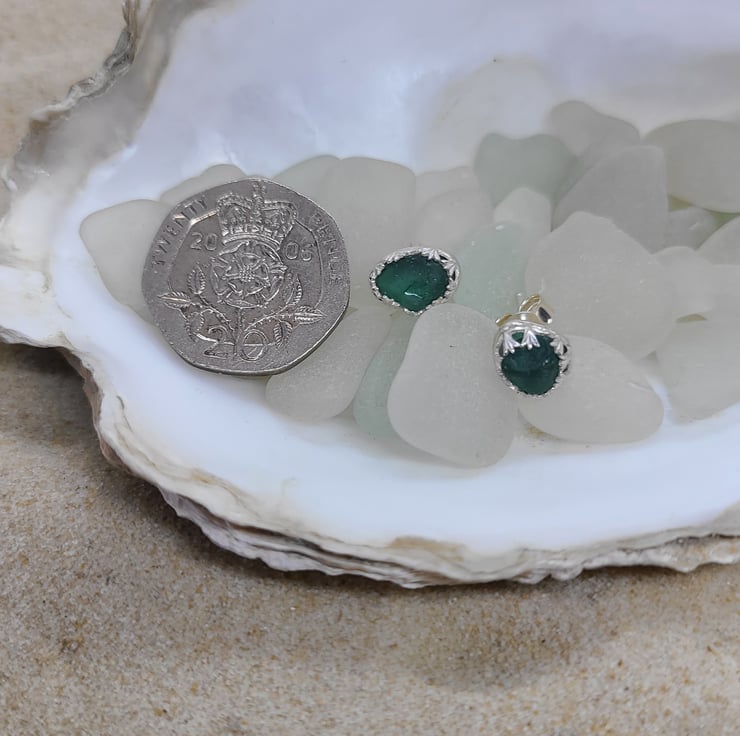 The sea glass measures approximately 0.9cm x 0.7cm.