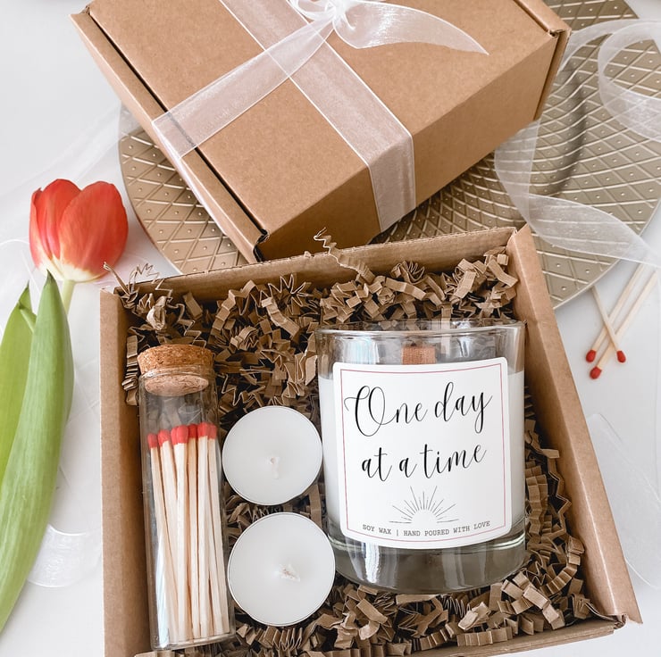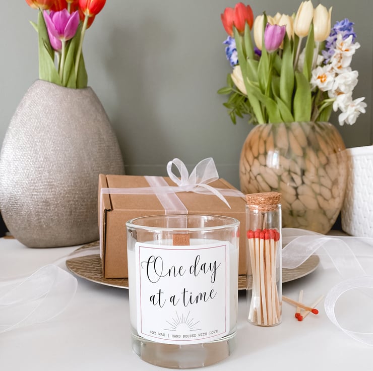 One Day At a Time, get well soon gift, Supportive Gift, Thinking of you gifts, Sorry for your loss gift, Gift for grieving friend, Sobriety candle, Pick Me Up Gift For Friend, Grief & mourning, Soy Wax Candle Gift Set And Matches, thoughtful gift, best friend comfort gift, bereavement gift, Pet loss gift