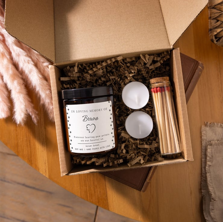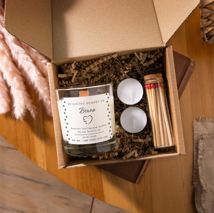 Illuminate cherished memories with our bespoke memorial candle, a touching tribute to beloved pets. Handcrafted with care, it's a heartfelt sympathy gift to honour your faithful companion's enduring spirit. Whether it's a cat or dog, our customised candle brings solace in moments of bereavement. With its gentle glow, it serves as a beacon of hope and love, offering comfort during the grieving process. Embrace healing and remembrance with this thoughtful pet sympathy gift.